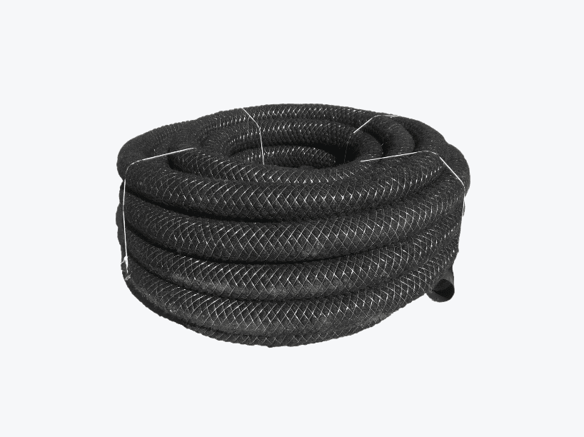 Drenžinį vamzdį su kokoso pluoštu rekomenduojame naudoti molingame grunte.